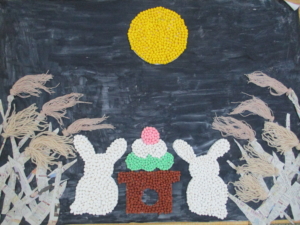 秋に向けた壁画作りです。中秋の名月、すすき