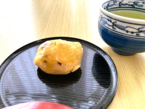 本日のおもてなしは職員手作りの【スイートポテト】です。