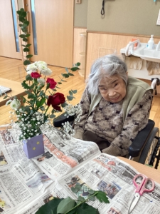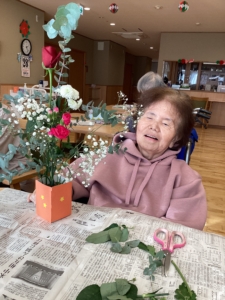 11月末ショートステイではフラワーアレンジメントを皆さんに楽しんでいただきました!