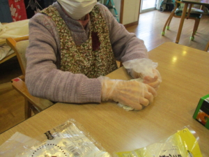 材料を袋に入れてみなさんに混ぜてもらい